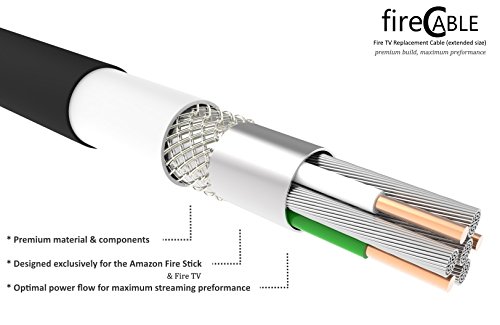 FireCable Extended - Excellent build quality, which suplies constant power for a smooth streaming experience. Eliminates the need to position your flat screen TV right next to an AC outlet, or run extension cords & power strips