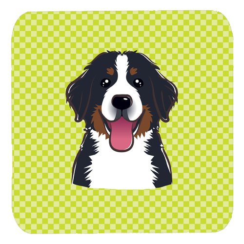 Caroline's Treasures BB1299FC Checkerboard Lime Green Bernese Mountain Dog Foam Coaster (Set of 4), 3.5" H x 3.5" W, Multicolor