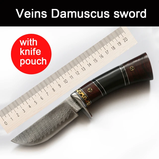 | [해외] 야외 도구 정맥 다마스커스 강철 블레이드 캠핑 나이프 캐리 높은 경도 전술 생존 칼 파우치 휴대용 선물 EF32 |