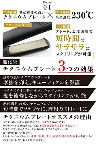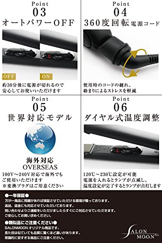 SALONMOON 스트레이트 고데기 【 2018년 진화판 】 더블 이온 티타늄 【 개량형 플레이트 채용 모델 】 해외 대응 프로 사양 온도 조정 130?230℃ 내열성 실리콘