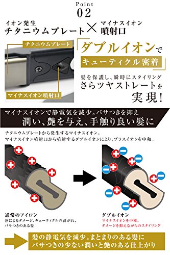 【2018 진화판】2017년 인기를 얻은 더블 이온 스트레이트 아이런의 진화판 【플로팅 티타늄 플레이트 채용】 머리카락에의 여분인 압력을 놓치는 쿠션 기능을 탑재.머리카락과 플레이트간의 마찰에 의한 데미지를 대폭적이게등 하고, 지털이나 단털을 막고, 이상의 스트레이트 헤어에.넘실거림 곱슬머리의 발질로도 호적입니다.여성 서는 떡 론 남성 그렇지만 사용하실 수 있습니다.