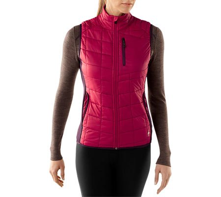 Studio : Smartwool Publisher : Smartwool Product Description FEATURES of the Smartwool Women's PhD SmartLoft Divide Vest SmartLoft Wool insulated quilted nylon with DWR front panel Merino Max double jersey knit back Merino wool jersey lining on front panel and inside collar Center front zipper with semi-locking logo slider, draft flap, and chin guard Secure zip chest pocket with logo slider and Durawelt grommet for media cord routing SPECIFICATIONS of the Smartwool Women's PhD SmartLoft Divide Vest Semi-Form Fit Shell 1: 100% Nylon Shell 2: 97% Merino Wool 3% Elastane Lining: 100% Merino Wool Fill: 80% Wool 20% Polyester Garment Weight: 11.29 oz / 320 g 0