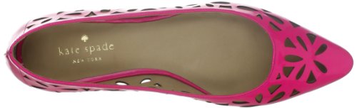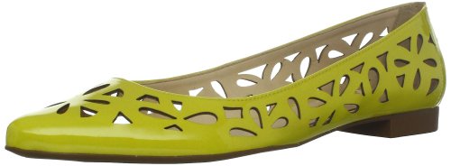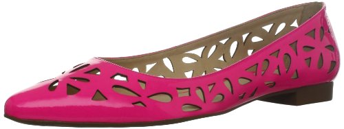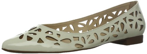 A perforated, patent leather upper lends feminine stylelines to this ballet flat.