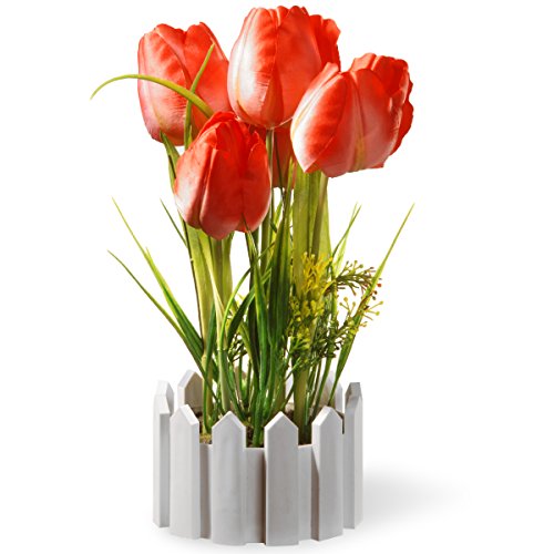 National Tree 11 Inch Red Tulips with Round White Picket Fence Base (NF36-5031S-1)