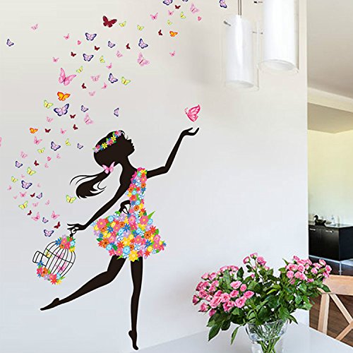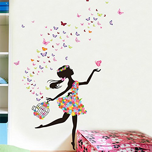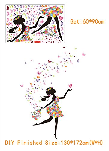 51 x 68 Inch Butterfly DIY Wall Sticker Decor Fairy Flower Girl Wall Decal Art Vintage Wall Decals for Kids Wedding Room Home Bedroom Living Room Decoration