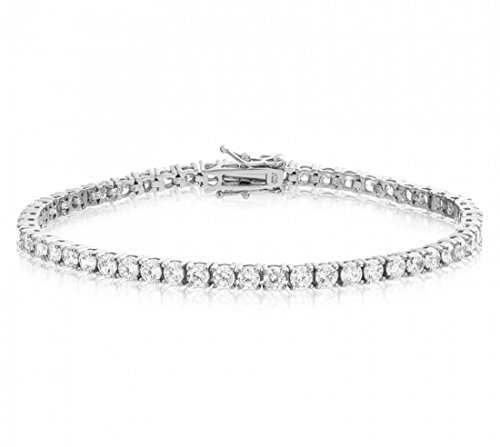 -. Feature : High quality classic 4 prongs tennis bracelet, adorned with 0.20 carat (3mm) brilliant round simulated diamonds. / Each stone is brilliantly cut with 64 facets, which is made possible using high-tech computer-aided lasers. / Hence, this bracelet is full of fire with explosives of sparkles. It sparkles even in dim light, just like real diamonds, which is something that CZ and crystal could not. / With excellent craftsmanship and with stones cut like real diamonds, this is a piece of lovely jewelry. Comes in gift box. / Clasp: box tongue with two safety latches. Length of your choice: 6.5 inches, 7 inches and 8 inches. Made of solid 925 sterling silver, stamped 925. Platinum plated for extra shine and protection.