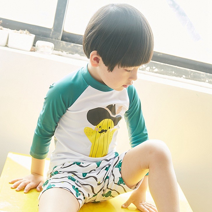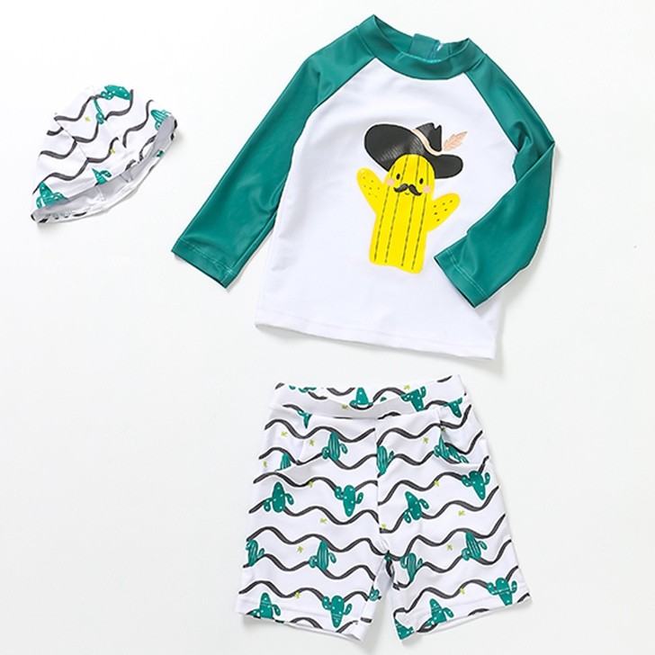 【製品仕様】■商品名子供水着 上下セット キャップ付き 男 スイムスーツ 男の子 3点セット UV対策 90 100 110 120 130 140■サイズ/寸法平置採寸 トップス90/100/110/120/130/140■素材/材質ナイロン スパンデックス■色グリーン
