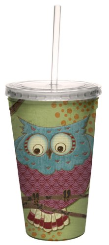 Tree-Free Greetings cc33431 Whimsical Owl on Green by Paul Brent Artful Traveler Double-Walled Cool Cup with Reusable Straw, 16-Ounce, Multicolored