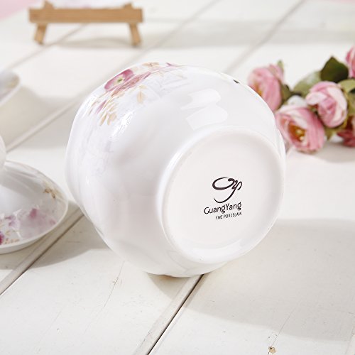 Studio : GuangYang Publisher : GuangYang Product Description MATERIAL: Made of high quality porcelainNew Bone China make them healthy sturdy for daily use. (1)Clear glaze of lead, cadmium and other harmful ingredients to human health, and add more ingredients beneficial to human health, like calcium, magnesium mineral elements. (2) Improve human immunity, eliminate phlegm and relieve disease in aging, longevity effect. (3)Lightweight (half as light as reinforced porcelain) with durability and resistance,easy to handle it. DESIGN: Simple and classical style, vivid rose painting pattern make you feel comfortable and at ease USAGE TIPS: Save time and energy:simply rinse clean,it will be ready to use. (1) Safe in dishwasher (2) Easy to clean no residue left,the lustre still looks like new after long time use. (3)Great for home restaurant us and a good choice for wedding gifts, bridal showers, housewarming presents, coffee drinkers especially on holidays. (4)The transmittance of bone porcelain is preserved. Under the light, show elegant ivory color and bright and bright color, can foil the hue of food very well. (5)All our products are decorated with gift box which is the best gift to surprise the box aficionados.Buy him/her a gift right now!!! ? MERRY CHRISTMAS ?Buy $67.56 or more, SAVE 5%?on spoons Buy $135.12or more, SAVE 10%?Buy $202.68 or more, SAVE 15%?Limited time, limited offer Best Christmas gifts from GuangYang ! *There may be a small difference in size as these items are handmade. *The actual product may be different to what you see in photos due to performance and resolution of your display. 0