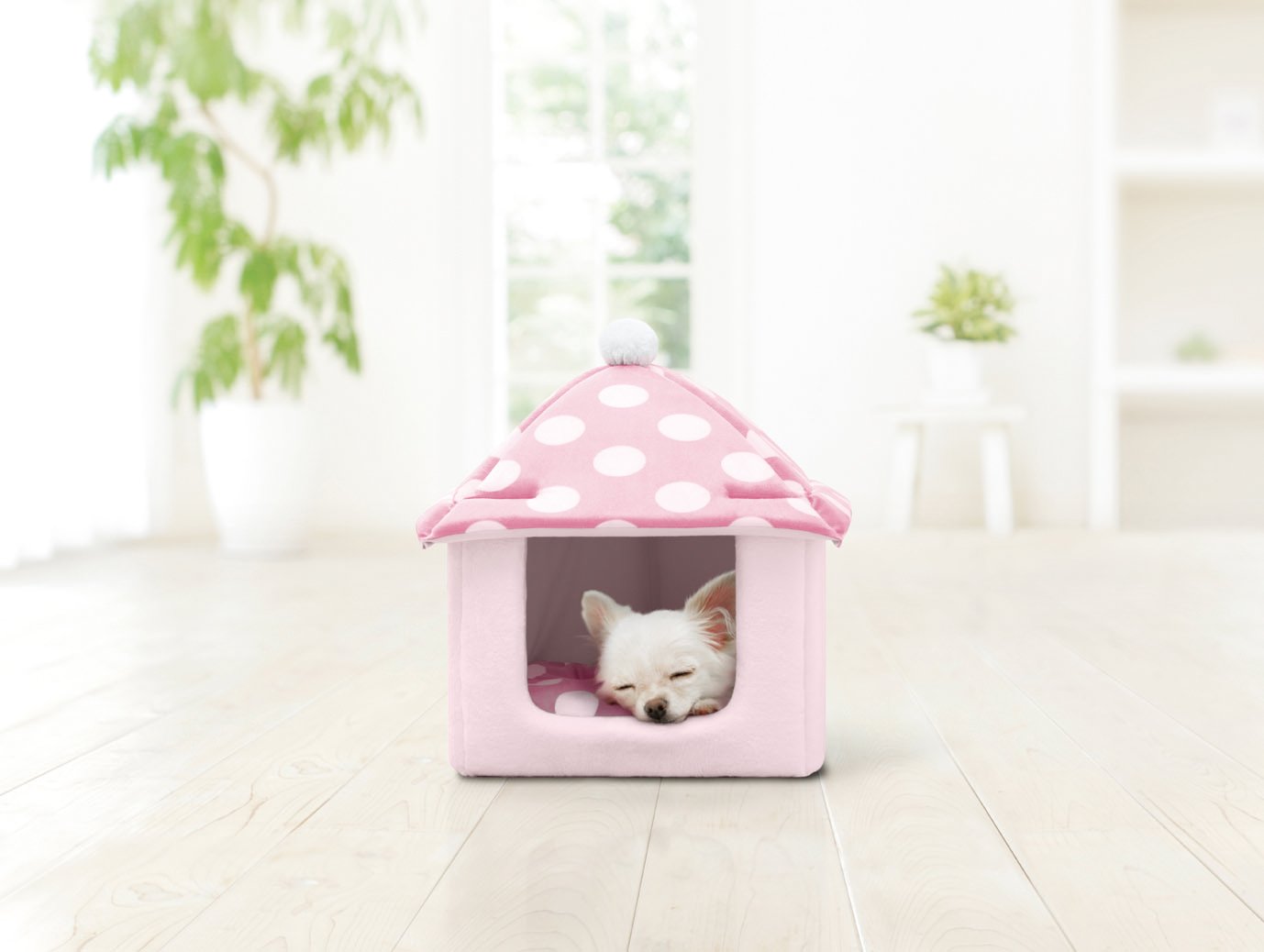 Dog house of soft material which can be used throughout the year.