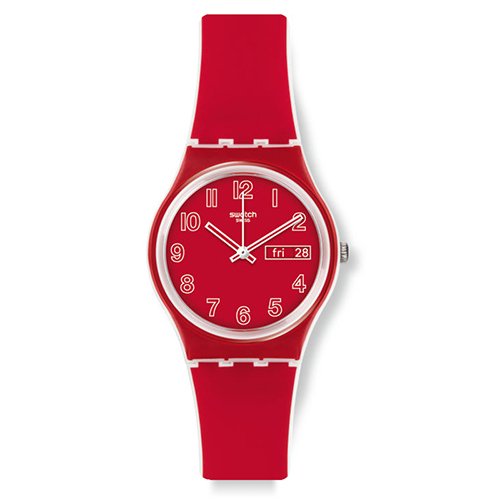 Swatch Red Dial Plastic Silicone Quartz Ladies Watch GW705