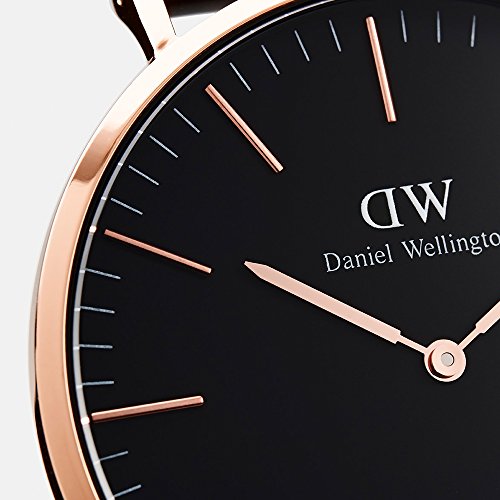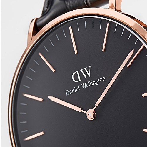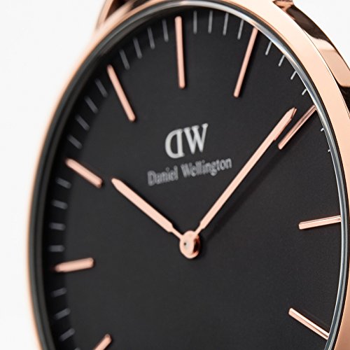 Round rose-gold plated Japanese quartz watch, black dial, scratch resistant mineral crystal glass