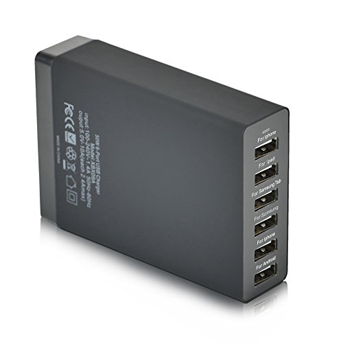 -. Title : ETvalley 50 Watt Multi-Port 6 Port USB Outlet Charger High Speed for Apple iPhone iPod iPad Samsung Android Tablets and Others (Black)