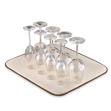 -. Feature : An attractive waffle-weave microfiber mat that is super-absorbent, dries fast and resist stains / Padded to protect countertops and dishes, plus stores easily / Great for use under a dish rack; machine washable