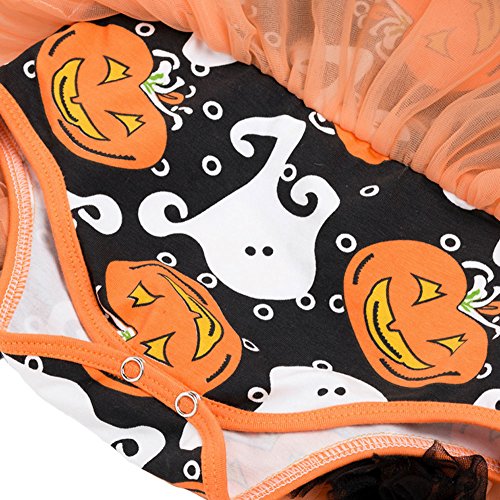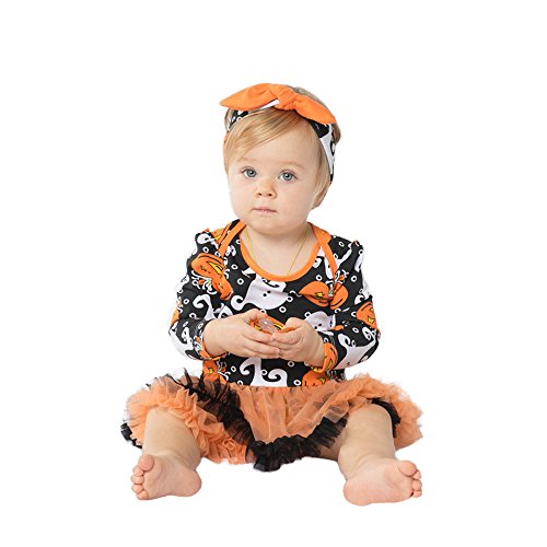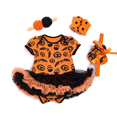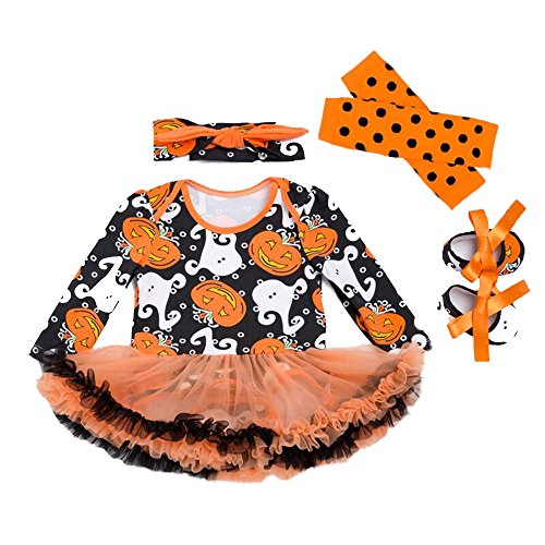 -. Feature : Set include: HEADBAND with HAIR CLIPS, ROMPER, LEG WARMERS, SHOES / High quality SOFT QUILT DRY and breathable cotton fabric, have soft finishing and wicking treatment / Layered ruffle trimmings around the waist, snap closures at bottom for easy diaper changing / Matching with polka dots leg warmers and bowknot lovely shoes, baby girls cute and adorable romper dress, HALLOWEEN PUMPKIN COSTUME OUTFITS / Suitable for halloween, birthdays, holidays, party, pageant, family photo day, home or other casual occasions.