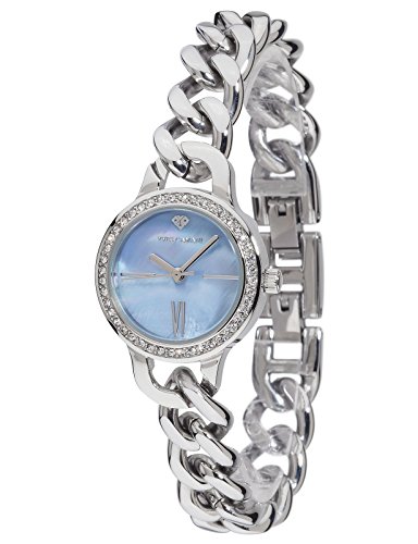 Yves Camani Burgaudine Women's Wrist Watch Quartz Analog Stainless Steel Silver Blue Dial Mother Of Pearl