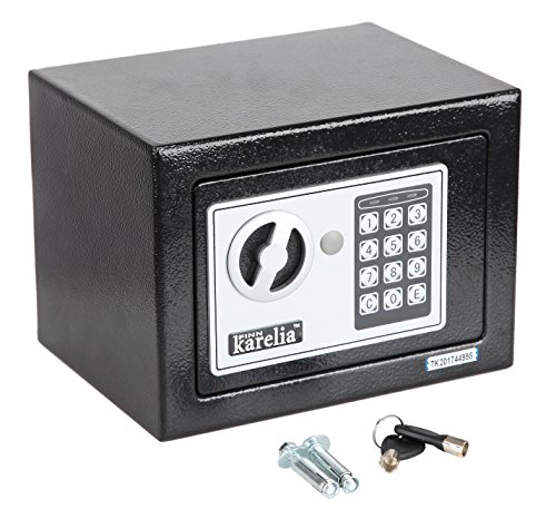 Finnkarelia Digital Security Box, Safe Box, Security Safe for Jewelry, Gun, Cash, Passport and more, Compact Size 9.1x6.7x6.7 inches, Black
