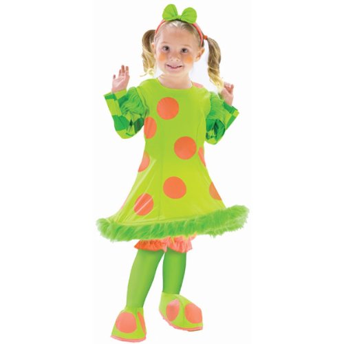 -. Feature : Costume set includes hoop dress, bloomers, leggings, shoe covers and headband. / The toddler Lolli the Clown comes in sizes Large, Small. / Please note: This item's color may vary due to inherent manufacturing variations or your computer monitor's color settings. The item you receive will be identical or substantially similar to the item pictured in this listing.