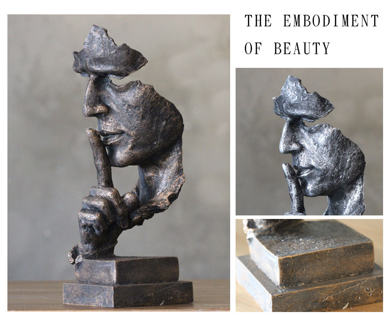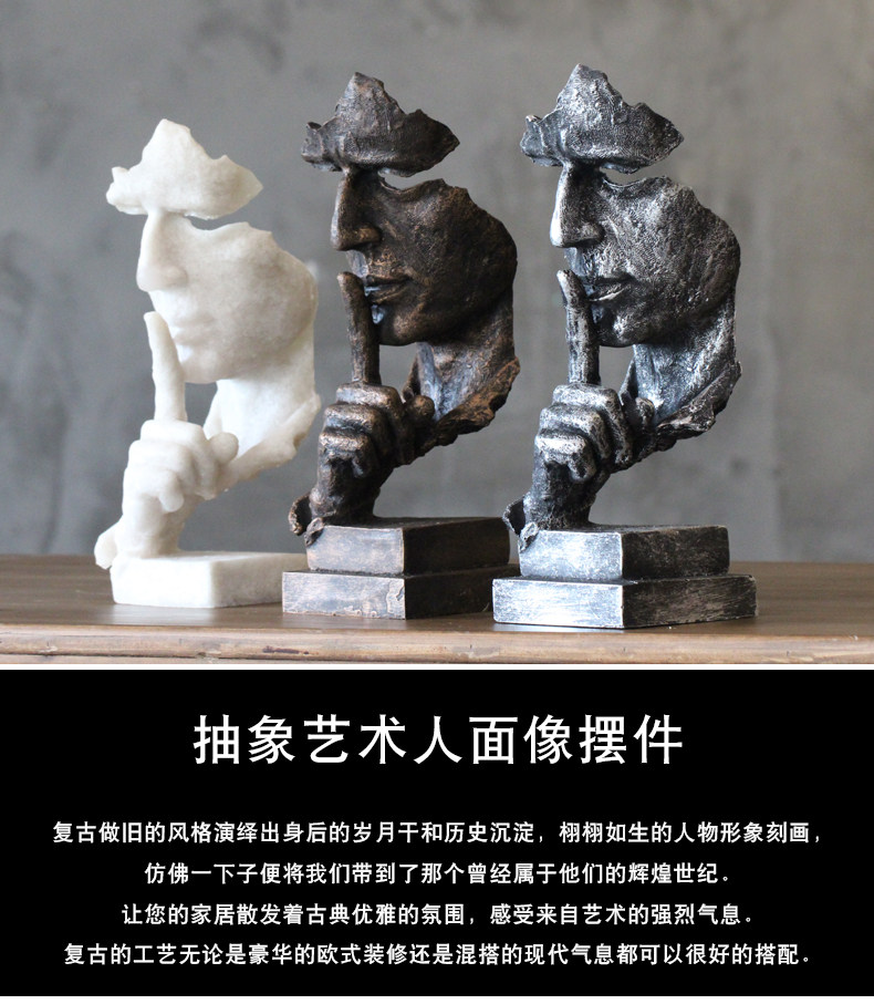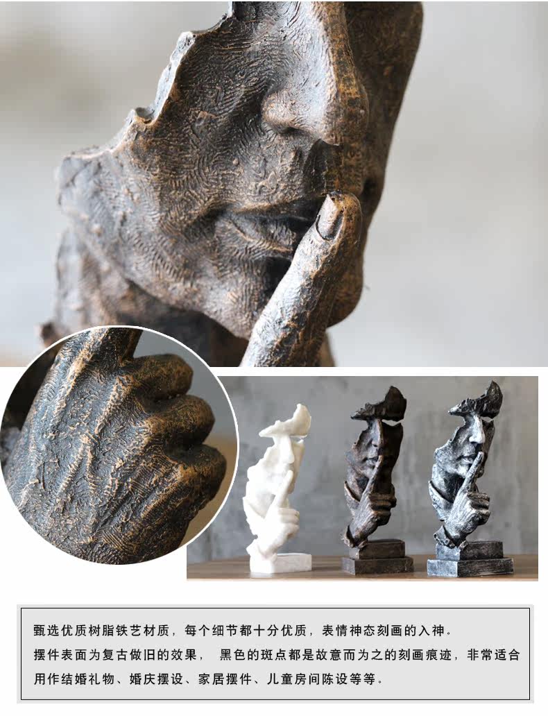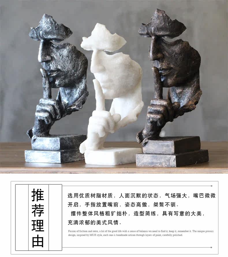 创意沉默是金雕塑工艺品摆件复古家居办公室客厅艺术品装饰品摆设