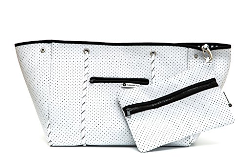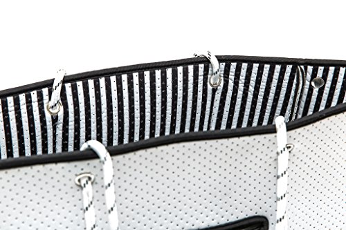 PRACTICAL YET STYLISH -Made from perforated neoprene (think wetsuit) fabric and supported by strong sailing rope, these bags are made for carrying everything you need without having to lose your sense of style. Whilst the neoprene fabric provides an element of softness, the robustness of the bag ensures that it can be filled to capacity. These bags can be washed, wiped, and thrown around whilst still maintaining their integrity.