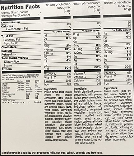 Product Description For variety and versatility, Proti Kind's satisfying savory soups are hard to beat. All offer 15 grams of protein and several can also be used as sauces. A delicious option for a light meal and a real treat on cold days. 0