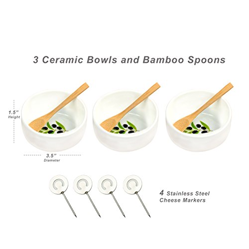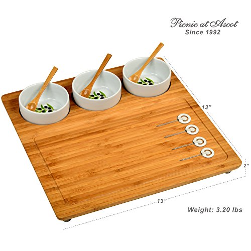 Picnic at Ascot Bamboo Cheese Board/ Charcuterie Platter with 3 Ceramic Bowls and Markers- A Great Holiday Gift for Gourmets
