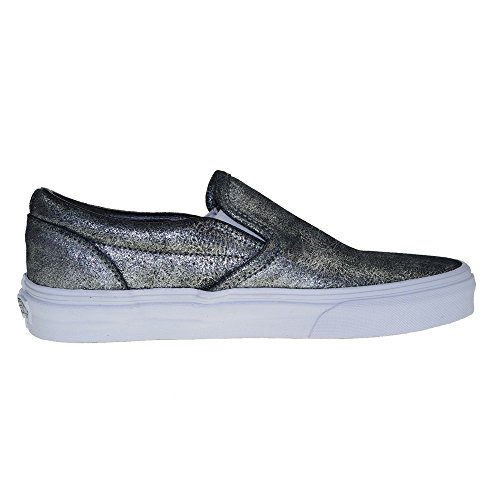 The Metallic Classic Slip-On has a low profile. slip-on metallic textile upper with elastic side accents Vans flag label and Vans Waffle Outsole Brand : Vans MPN(PartNumber) : VN-00ME4F0 EAN : 0757969650080 Product Dimensions(LxWxH) : 23x11x16cm ; 885 g