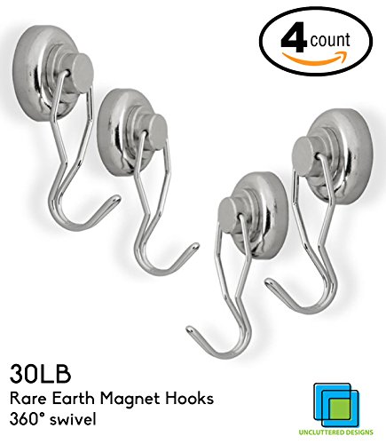 Uncluttered Designs Mighty Magnet Swivel Hooks, Ultra Heavy Duty Strong Neodymium Magnetic Hooks (30 lb, 4 pack)