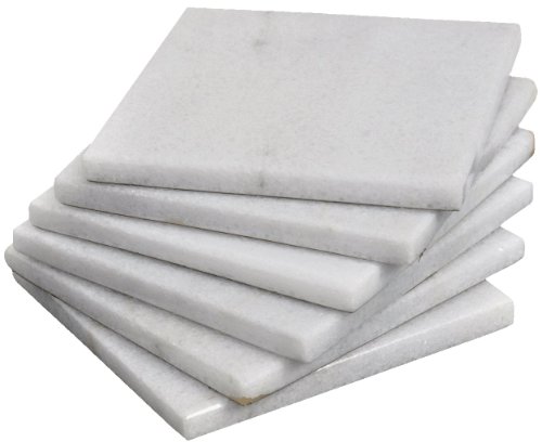 - SUITS ANY KITCHEN THEME These coasters are made of high quality and polished white marble, and will never look out of place with any kitchen theme or color. They measure 3.5x3.5 inches( 9x9 cm) and will comfortably hold any wine glass, cup, or mug.