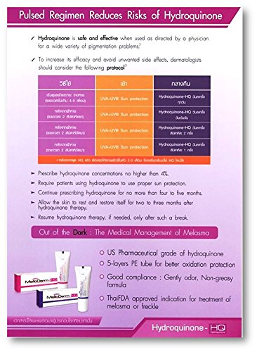 Manufacturer Berich Distributor Berich Contents Hydroquinone 2% Indications Treatment of melasma or freckles. Dosage Apply once daily at night. Contraindications Hypersensitivity. Sunburn or depilatory usage. Childn <12 yr. Presentation/Packing Form MelloDerm-HQ topical gel 2% Packing/Price 0.25 Ounces x 1'sFeature