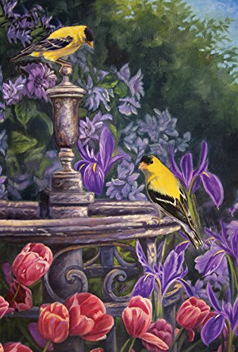 Toland Home Garden Gold Finch Birdbath 28 x 40 Inch Decorative Spring Summer Flower Yellow Bird House Flag
