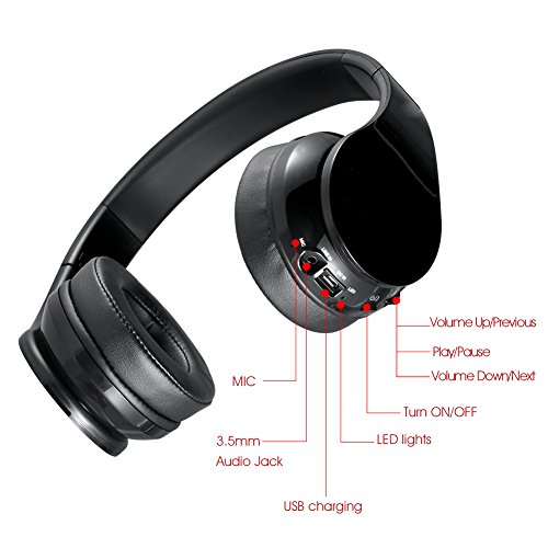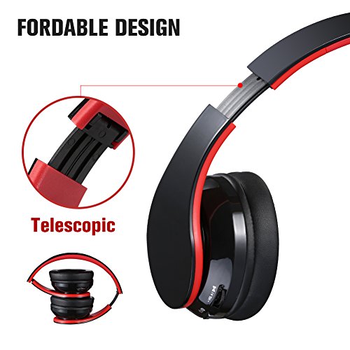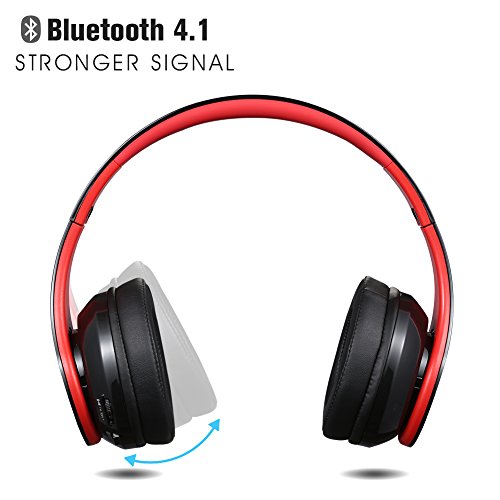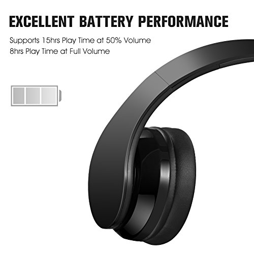 -. Feature : Hi-Fi stereo performance, Dual 40mm large-aperture driver units and Built-in industry-leading CSR bluetooth 4.1 Chip, which can transmit data at high speed and comes with clearer communication quality, lower latency and better audio output. / Comfortable Over-Ear Fit:Professional protein earpad and ABS environmental plastic material retractable headband delivers more durability and comfort. It does not hurt your ears after long-time wearing. / Durable Power Supply: 250mAh capacity rechargeable battery provide you up to 8-10hrs (full volume), 15hrs (50% volume) music listening per charge. / Built-in Mic and Hands-Free Call: No need to worry about missing call when you are away from phone, you can answer or hang up your calls more freely via the button on the headphone (Bluetooth connection distance within 33ft).But please note that the built-in microphone only works in the wireless bluetooth mode. / Lightweight&Foldable: Stylish foldable design brings you more convenience to folds it in your travel case for outdoor use. A headset bag is also provided.
