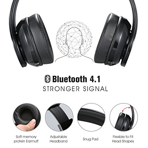 -. Title : Wireless Headset, Jiebleum Bluetooth 4.1 Headphone Foldable Hi-Fi Stereo Over-Ear Headphone with 3.5mm Audio Jack MIC for Smart Phones & Tablets - Black