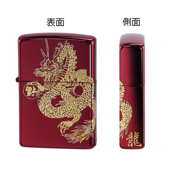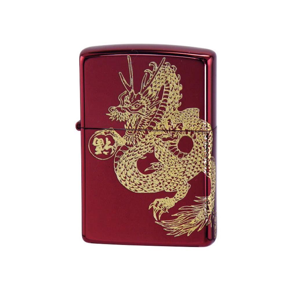 | 倒福の水晶を持った皇帝の龍が2面に連なり描かれたZIPPO |