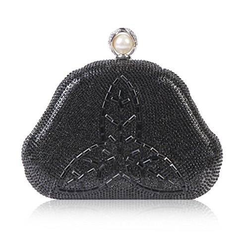 Damara Womens Fully Rhinestones Clover Style Crystal Evening Bag