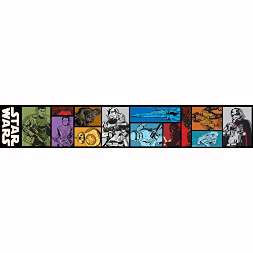 -. Feature : Official Star Wars merchandise, Features characters from The Force Awakens / High quality wallpaper border / 5m (16.4ft) long, 10.6cm (4.25in) high / Self adhesive - can be re-positioned with ease / No need for messy glue or paste, Can be easily removed