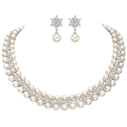 -. Binding : Jewelry -. Brand : EVER FAITH -. Department : womens -. Feature : [!]EVER FAITH® is a US registered trademark and Ever Faith Jewelry is its only owner. / Cubic zirconias are pronged to the jewelry item to secure from loosing. / Brass Metal is much smoother and will protect your skin from rubbing. You will feel comfortable when wearing it. Also, jewelry made by brass metal has light weight. / Wrapping: Come with a gift box and a favor bag. If you need assistance please contact us. -. Label : EVER FAITH -. Manufacturer : EVER FAITH -. ProductGroup : Jewelry -. ProductTypeName : FASHIONOTHER -. Publisher : EVER FAITH -. Studio : EVER FAITH -. Title : EVER FAITH Women's CZ Cream Simulated Pearl 2 Layers Floral Necklace Earrings Bracelet Set