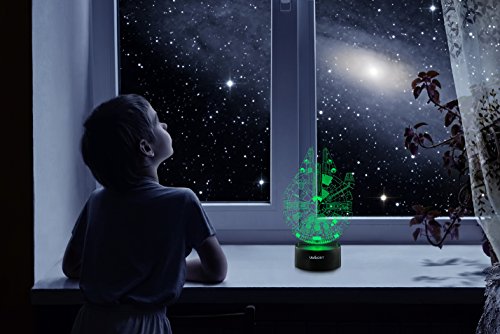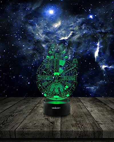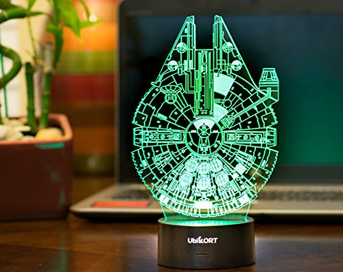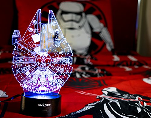 ✓ EXCELLENT THANKSGIVING GIFT Everyone including STAR WARS FANS loves to have the UbiKORT 3D Star Wars Millennium Falcon Lamp! The lamp is a GREAT BIRTHDAY GIFT item for men, women, boys, girls, kids, star wars fans of all ages.