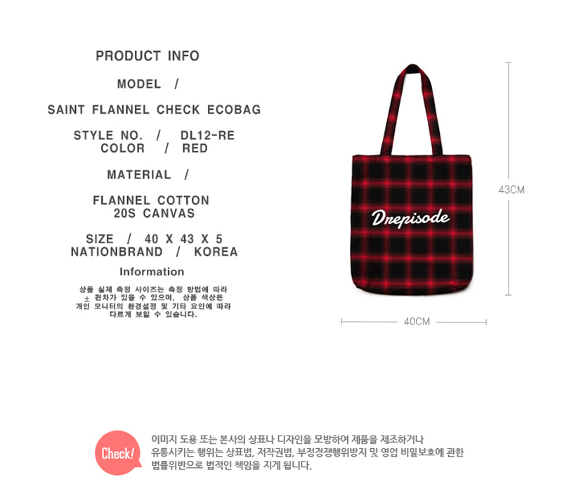 명품 및 하이엔드 스트릿 셔츠 플란넬 패브릭으로 제작된 상품으로 포인트 착용이 가능한 스타일리쉬 체크 에코백입니다.