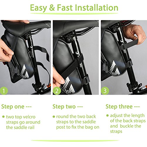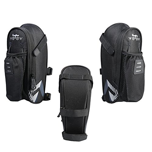 Outstanding features of WOTOW saddle bag ? high quality material ? roomier load capacity ? streamlined design reduce air friction ? extra pocket for a larger space ? fast and convenient hook and loop fastener straps ? easy to take on and off ? safe security with reflective stripes and reflective logo ? nipped waist shape make a better fit for the bike