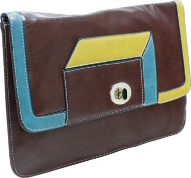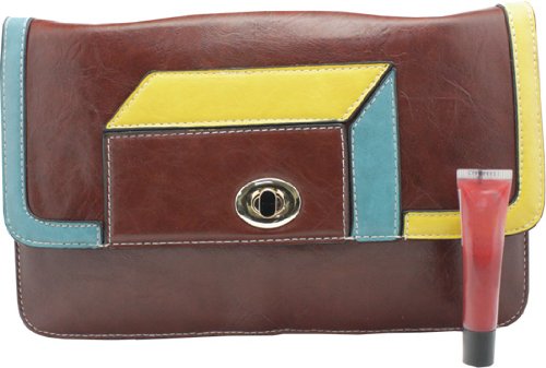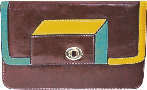 Femina Retro Geometric Modern Clutch Handbag (Coffee) with Detachable Gold Color Chain Strap