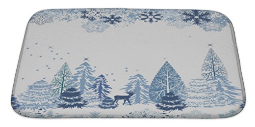 Gear New No Slip Microfiber Memory Foam Pattern with Winter Forest Bath Rug Mat, 34" X 21"