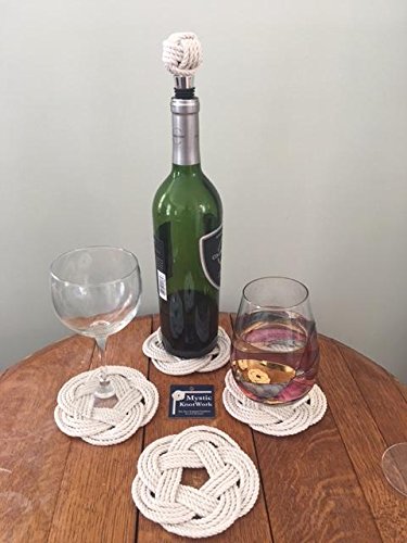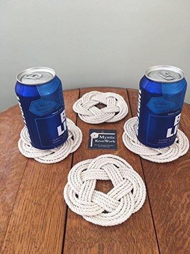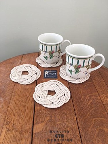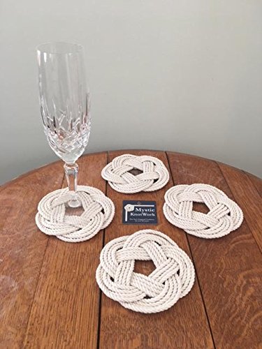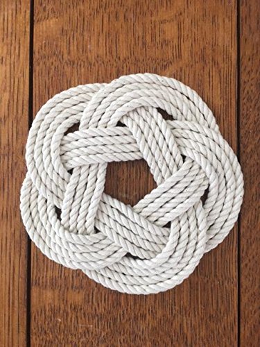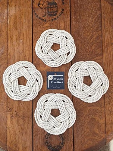 White Nautical Sailor Knot Turks Head Coasters, Set of 4