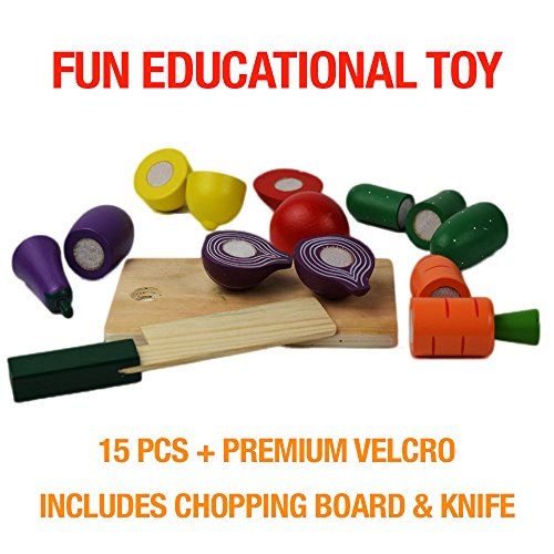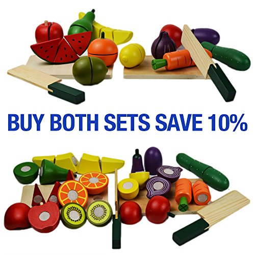 ✅ WOODEN VEGETABLE CUTTING SET - The toddler play food self stick blocks hold pieces together, then "slice" apart. The wooden cutting fruits and veggies toy food toys set makes a great gift idea