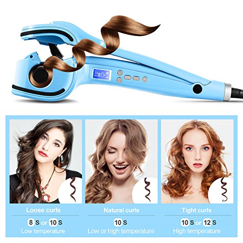Temperature and Time adjustable The blue automatic curling iron have 3 adjustable temperatures (370F, 410F, 450F) and 4 timers setting(00s,08s,10s,12s)Different settings come out different result-370F ,8s (applied to delicate colored hair); 410F,10s/12s (applied to normal textured hair); 450F,12s (applied to thick,wavy hair)