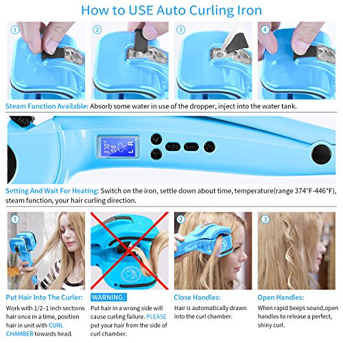 ANTI-FRIZZ & ANTI-STATIC: Automatic curler with steam spray function prevent your hair from flyaway or frizzes, And with Beep Alarm to make you more easy to get a smooth, shiny, salon hairstyle.