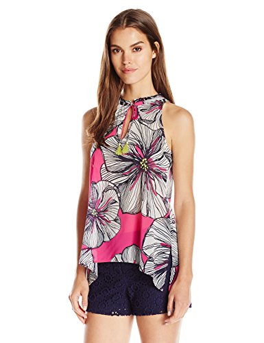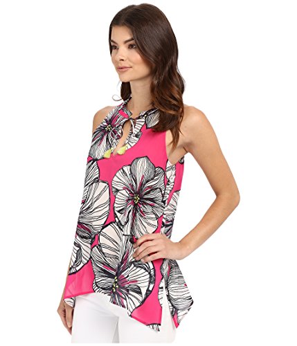 Trina Turk Women's Blaise Agean Floral Stretch Silk Georgette Sleeveless Top