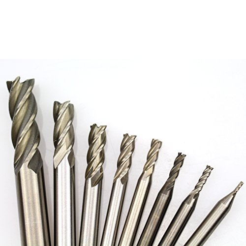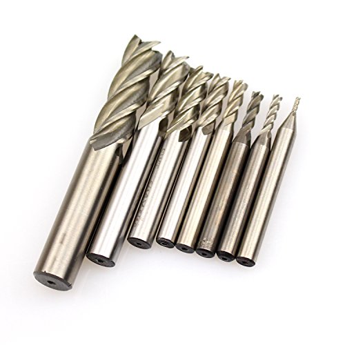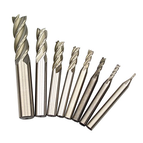 DYWISHKEY 1/16" 1/8" 5/32'' 3/16" 1/4" 5/16" 3/8" 1/2" HSS 4 Flute Straight Shank Square Nose End Mill Cutter (8 Pcs)