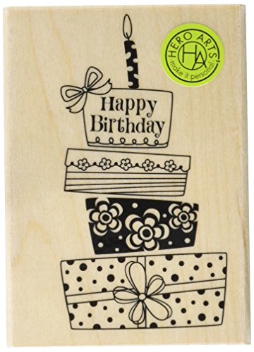 A pile of wrapped gifts hold a birthday candle in this whimsical stamp. Works great with all Hero Arts stamps.