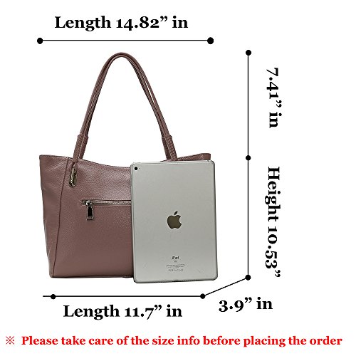 - Zipper closure. Large capacity and opening. 2 roomy main pockets, 1 inner zipper pocket and 1 invisible zipper pocket inside. 1 Rear zipper pocket for your change and coin. Unique handle design, and durable handbag with a spacious room for holding all your IPAD, wallet, sunglasses, makeups and other daily things.